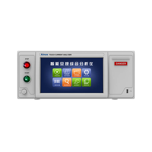 智能安规综合分析仪AN1640的智能化特性体现在测试流程自动化、数据处理数字化及远程控制能力上。设备配备7英寸彩色触控屏,内置中文操作界面,支持测试参数预设与调用,可存储100组测试程序,每组程序可包含8个连续测试步骤。例如针对家电产品测试,用户可预设“绝缘电阻→耐压→接地电阻”的连续测试序列,AN1640可自动完成电压切换、参数检测与结果判定,测试效率较传统手动操作提升40%以上。数据管理功能是AN1640适配现代化质检体系的重要支撑。智能安规综合分析仪AN1640具备10万条数据存储容量,可记录测试时间、电压、电流、电阻值及判定结果等信息,数据可通过USB接口导出至U盘,格式支持CSV与PDF,便于与实验室信息管理系统(LIMS)对接。此外,AN1640支持RS232与以太网通讯,运维人员可通过电脑端软件远程监控测试过程、修改参数并下载数据,尤其适用于生产线多台设备的集中管理场景。