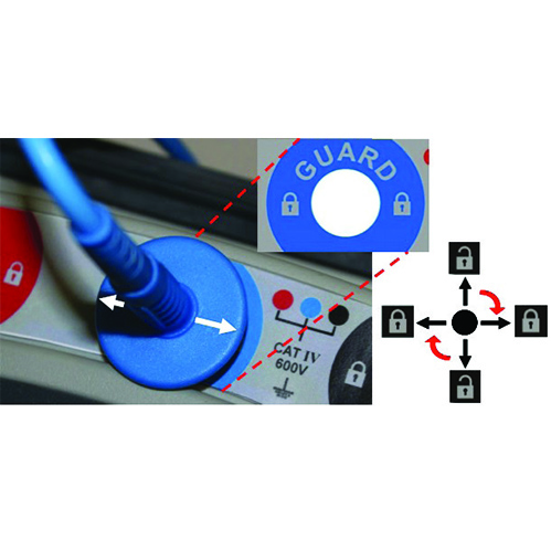 工业环境中的电磁噪声会干扰泄漏电流测量,Megger通过三级抗干扰技术实现精准测试:Essential系列具备3mA噪声抑制能力,Advanced升级至6mA(适用于230kV以下高压环境),Expert系列则通过8mA噪声抑制、自适应滤波与平均滤波,适配1000kV以下超高压场景。同时,Guard终端可屏蔽表面泄漏电流,在100GΩ测量时,屏蔽比达5000:1,附加误差仅1%。