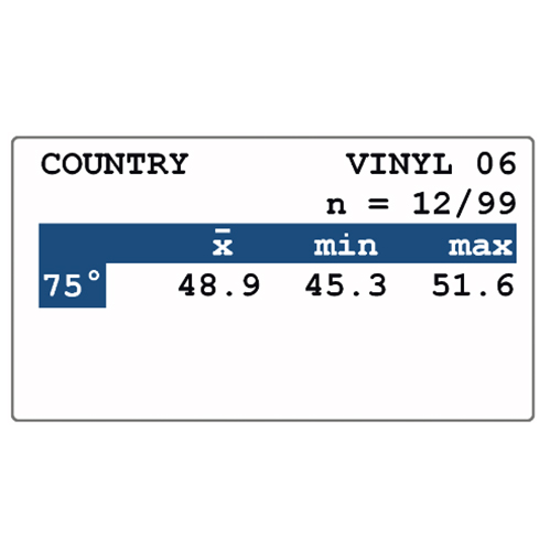测量流程的设计同样兼顾精准性与高效性:入射光经LED光源发射后,以75°角度照射到7x24mm(0.3x0.95英寸)的长条状测量区域,该尺寸针对纸张、乙烯基壁板的表面特性优化——长条状设计能够覆盖更广泛的检测范围,避免因测量点过小导致的偶然误差,尤其适合大面积卷材或板材的检测;材料表面的反射光经光学透镜收集后,由高灵敏度传感器将光信号转换为电信号,再通过内部芯片进行降噪、放大处理,最终以光泽单位(GU)的形式在彩色显示屏上呈现,整个过程仅需0.5秒/几何角度,能够满足批量样品的连续检测需求。